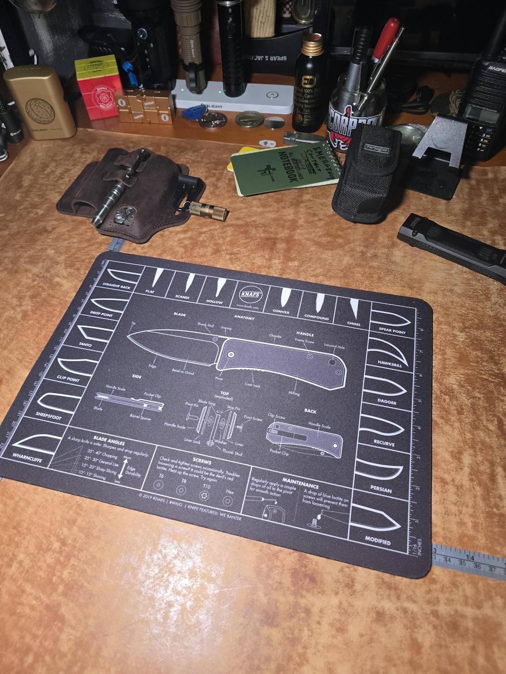 - RULERS:Ā there are printed rulers in inches and millimeters down the sides of the shop mat. Measure your tactical knives, fixed blades, spring assisted, everyday carry, swiss army and survival knives in epic fashion.