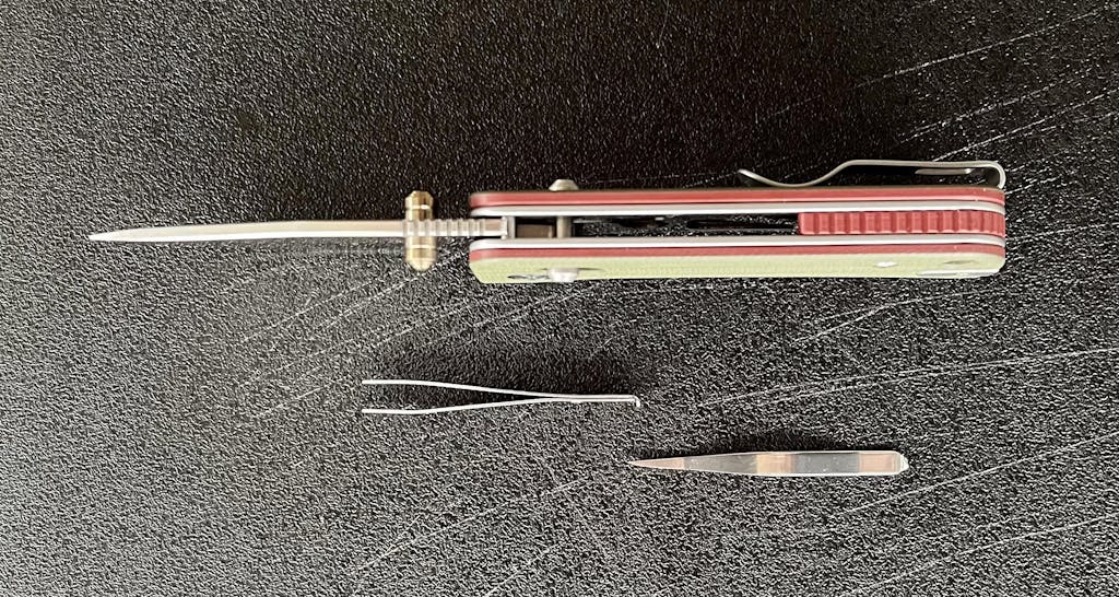 - Stainless Steel Tweezers and Toothpick stowed in the handle