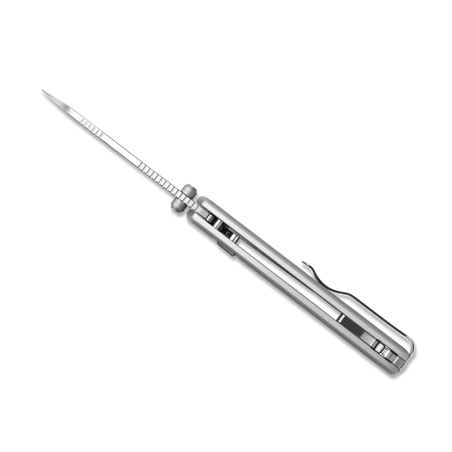 Minimalist Aluminium Handles – clean, screwless sides for a refined gentleman’s carry. Only one single visible screw at the top of the pocket clip - Dual Jimping Zones – added control near the tip and handle for varied grip positions