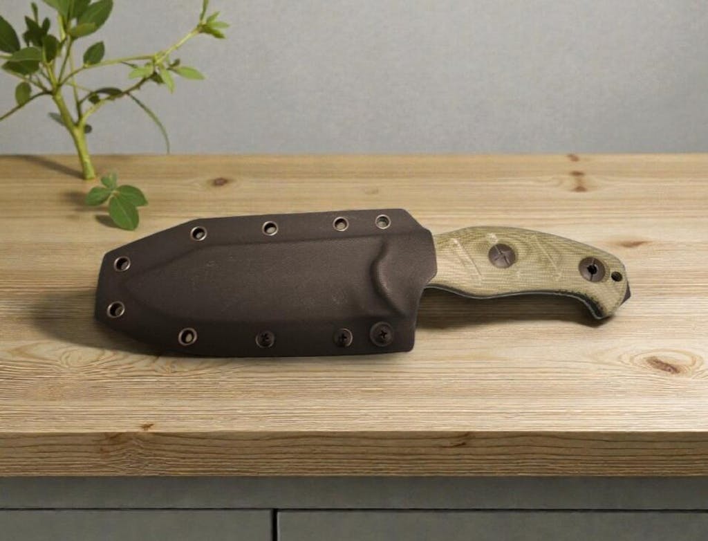 In hand, the G10 handle feels secure and comfortable, whether you’re bearing down or slowing things up for detail work. Paired with a durable Kydex sheath, it carries easily on your belt or pack and is always ready when you need a dependable fixed blade that earns its spot in your kit.