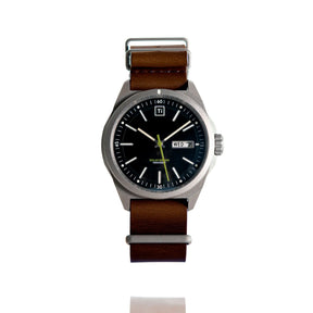 • Brown Horween leather w/ titanium hardware