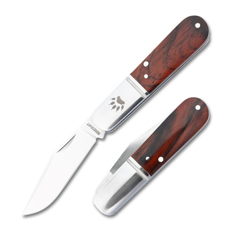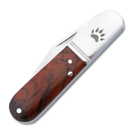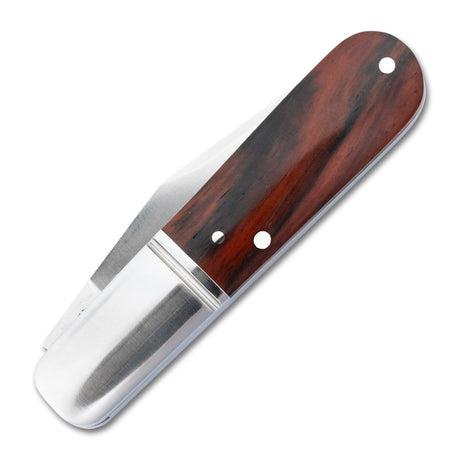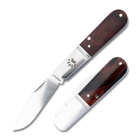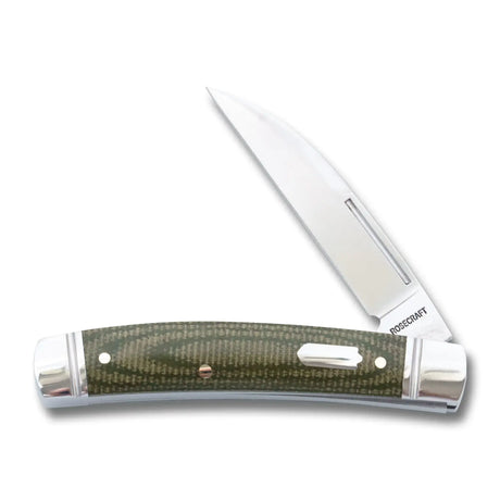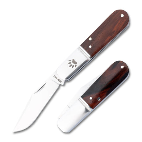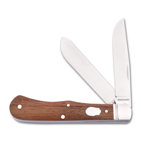 This refined slip joint folder is adorned with brushed steel bolsters, each precisely marked with RoseCraft's signature 'RC' hallmark. The robust steel liners provide additional structural integrity without compromising the knife's elegant 2.9-ounce weight. When closed, the Barlow maintains a pocket-friendly 3.5-inch profile, extending to a comfortable 6.4 inches when opened.