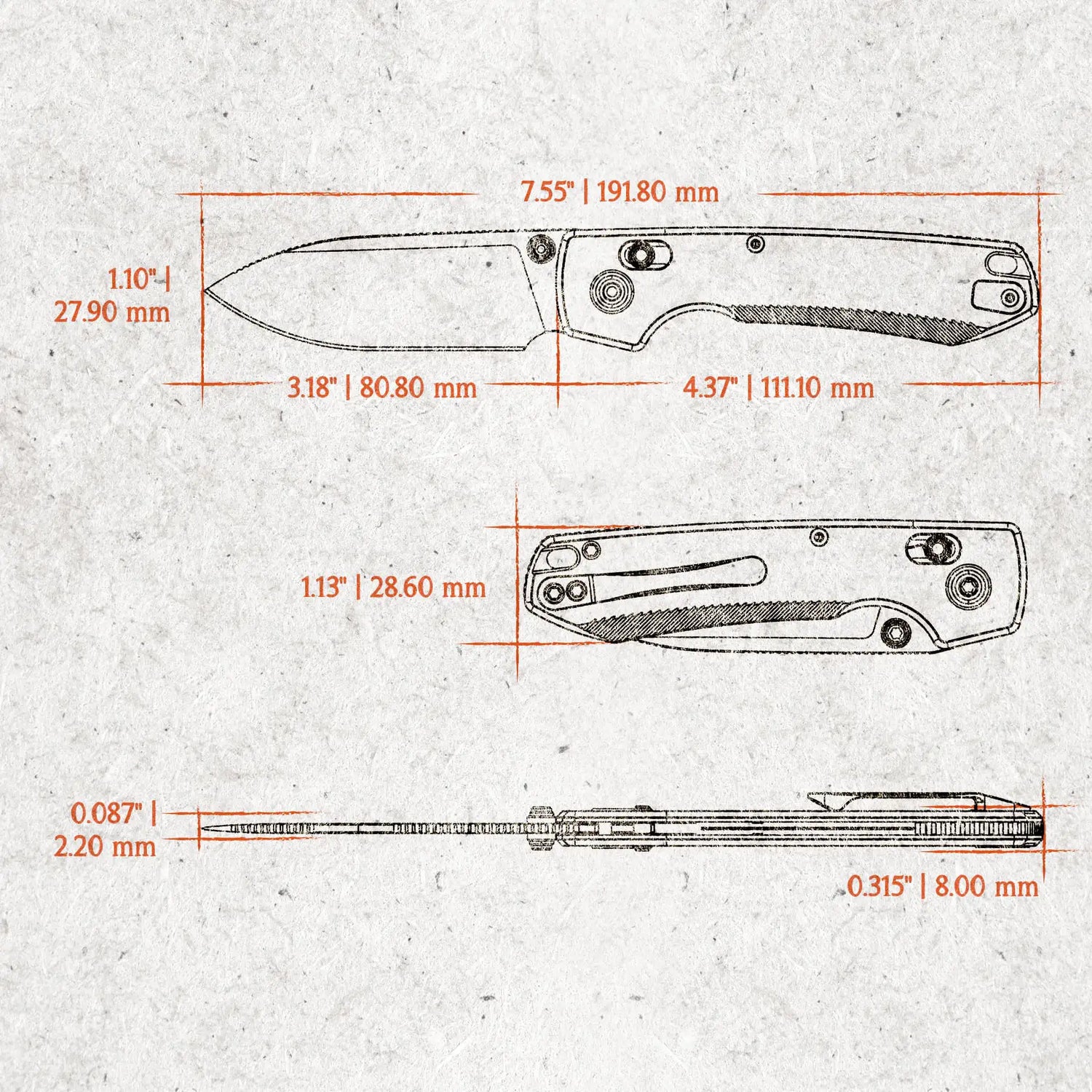 - Blade Length: 3.18" | 80.8 mm