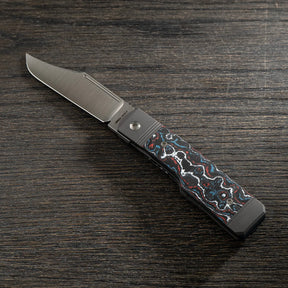 Gunslinger Jack V2 - Frame Lock - Fat Carbon Nebula | Belt Satin Blade is backordered and will ship as soon as it is back in stock.