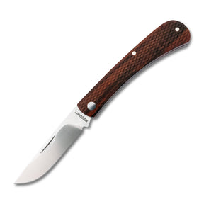 As the first bolster-free traditional slip joint in the RoseCraft lineup, it offers a streamlined design that’s as functional as it is visually striking. The handle showcases genuine Sandalwood with a diamond checkered milling for a secure, comfortable hold. Steel liners, nickel silver pins, and a bird’s eye pivot complete the timeless craftsmanship.