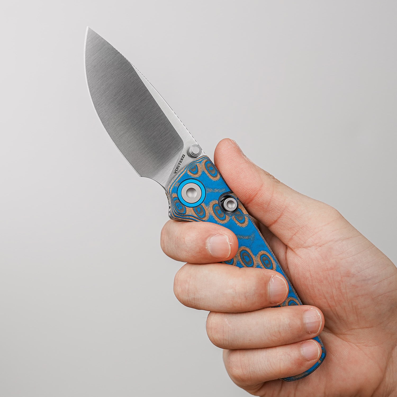 - Blue Ocean Micarta scales – grippy, durable, and gets better the more you carry it.