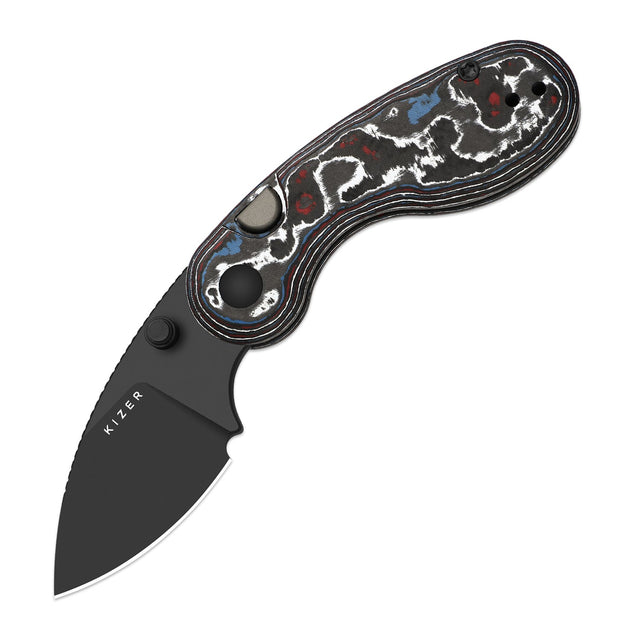 The Kizer Microbe is a true pocket rocket. Small enough to disappear into your 5th pocket, yet ever ready to tear into packages & daily tasks. Its closed profile is inspired by microscopic life, but once opened, it fills the hand surprisingly well, thanks to the curved handle and generous finger choil that allow a confident four-finger grip.