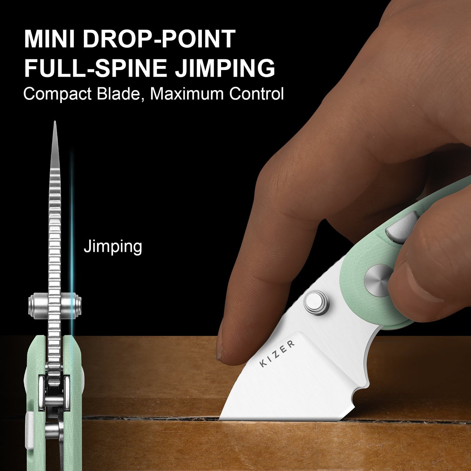The Kizer Microbe is a true pocket rocket. Small enough to disappear into your 5th pocket, yet ever ready to tear into packages & daily tasks. Its closed profile is inspired by microscopic life, but once opened, it fills the hand surprisingly well, thanks to the curved handle and generous finger choil that allow a confident four-finger grip. Lightweight, tough, and built for real-world use, the Microbe is that playful little EDC that still means business.