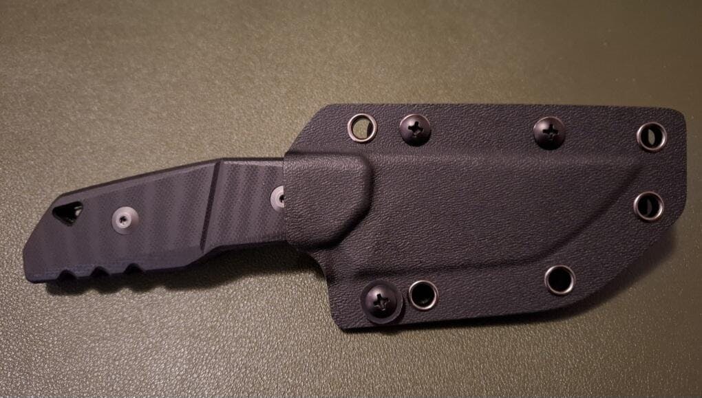 - Moulded Kydex sheath - with quick release, adjustable belt clip + paracord