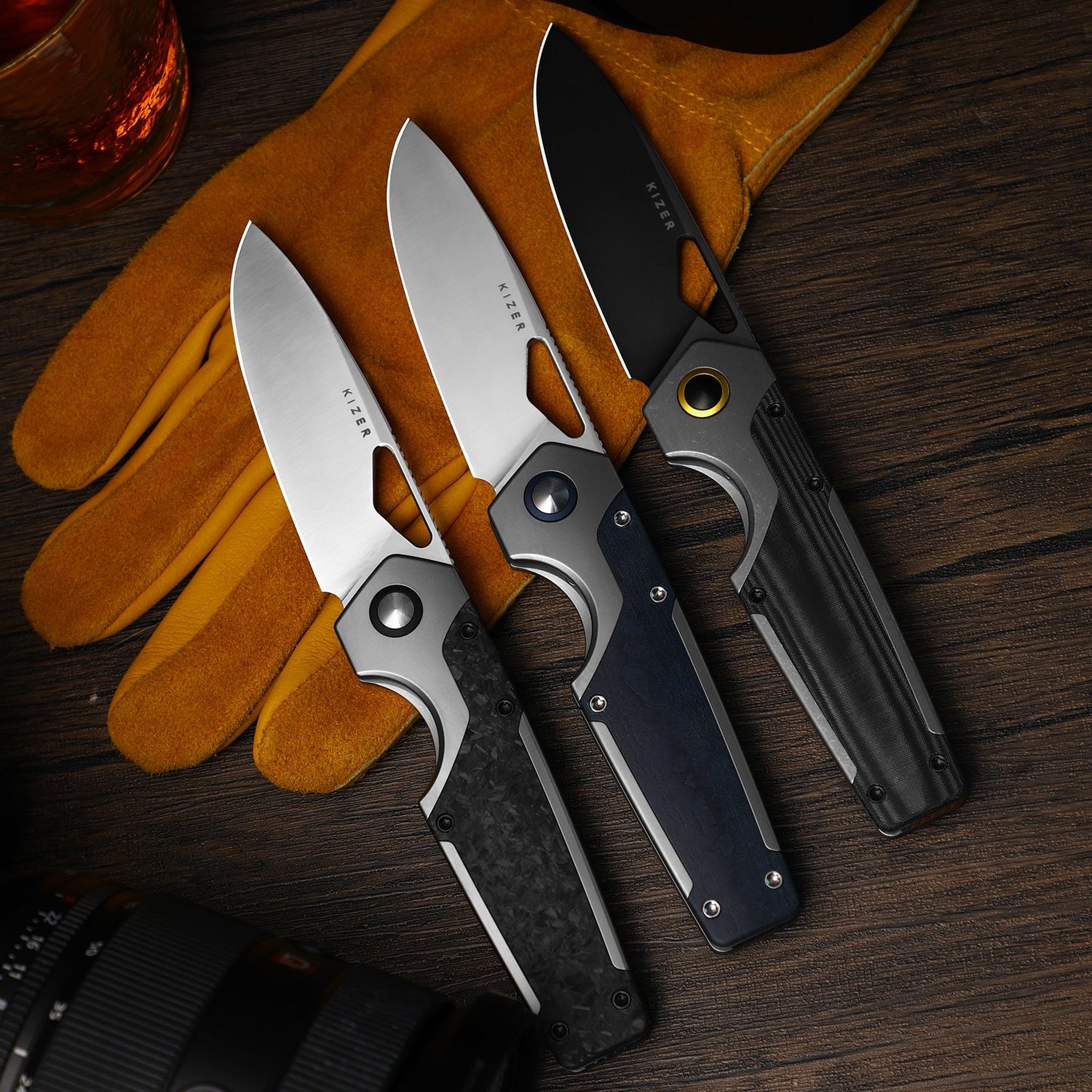 With titanium handles, richlite inlays, and a 3.47" Elmax drop point blade, the Serpentine delivers clean slicing performance backed by one of the silkiest actions Kizer offers. The thumb hole and front flipper combo gives you effortless deployment, and drops shut with that satisfying feel. A collector-worthy folder that’s just as happy earning pocket time.