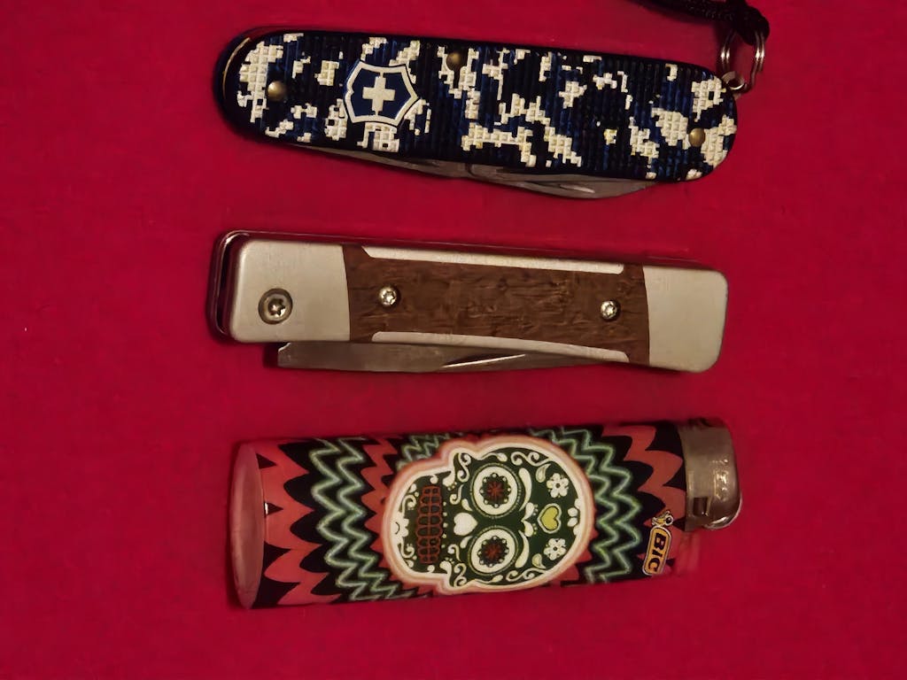 - Aluminium handle scales with Mkuruti Wood Inlays