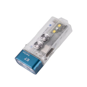 The RovyVon E7 is a compact flashlight that features dual primary (front) lights and dual side lights with 2 buttons to easily control the front and side lights separately. The body is made from fluorescence polycarbonate so it is both tough and glows in the dark!