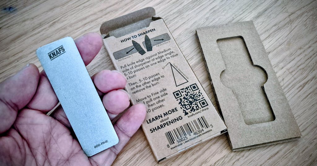 The Knafs Mini Pocket Knife Sharpener is the ultimate tiny sidekick for quick sharpening fixes. Designed to fit just about anywhere, it slides perfectly into a Tool Burrito but is equally at home tucked into a pack of gum, your shoe, wallet, watch pocket, or any slim spot that flat things love to call home.