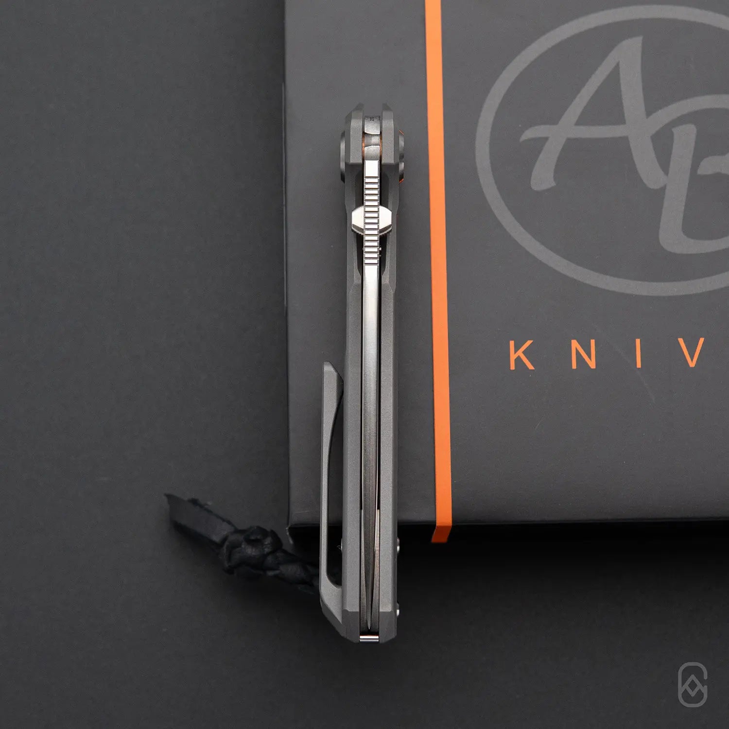 From the hex-shaped keyed pivot system and precision bearing housing to the redesigned titanium thumb stud, every detail has been engineered without compromise. The skeletonised titanium frame keeps weight to under 112g, while the larger backspacer protects the blade tip while closed. Deployment is effortless in multiple ways - flipper tab, reverse flick, thumb roll, or thumb stud, all backed by a rock-solid lockup and zero rattle.