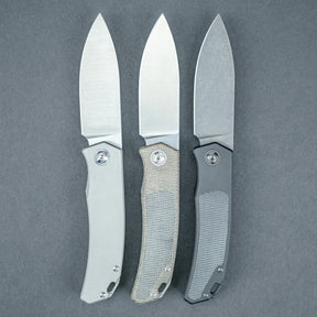 The milled titanium or micarta handles offer weight reduction, as well as everlasting toughness. Staying true to elements of Trevor's designs, 2 of the 3 available models feature black micarta inlays that raise the overall luxury factor of this design.