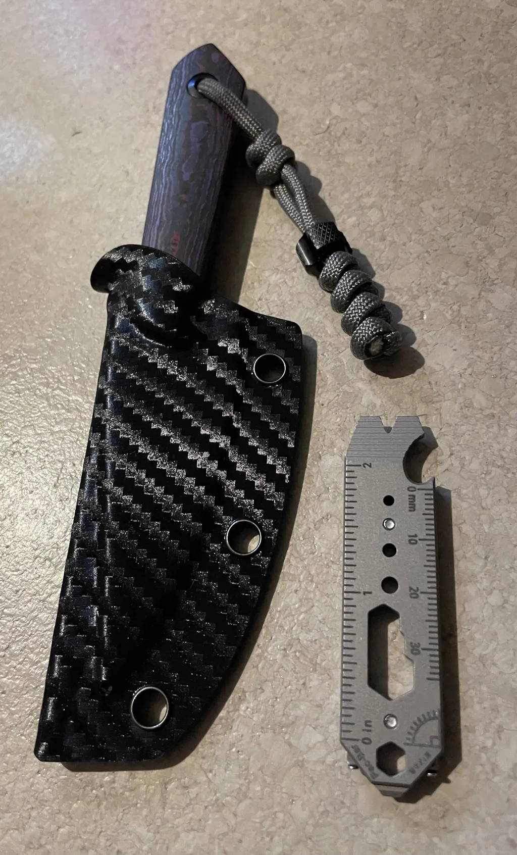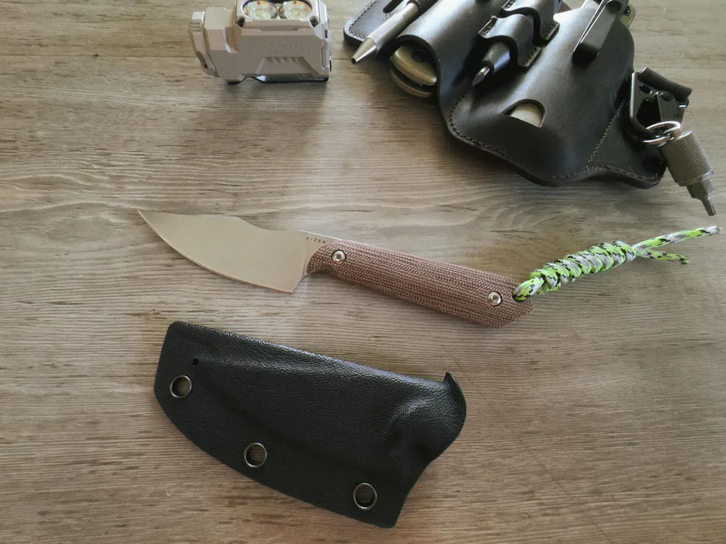 - Kydex sheath + adjustable belt clip