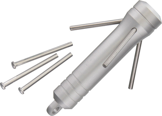 • Set of (3) stainless steel spikes stored inside the body