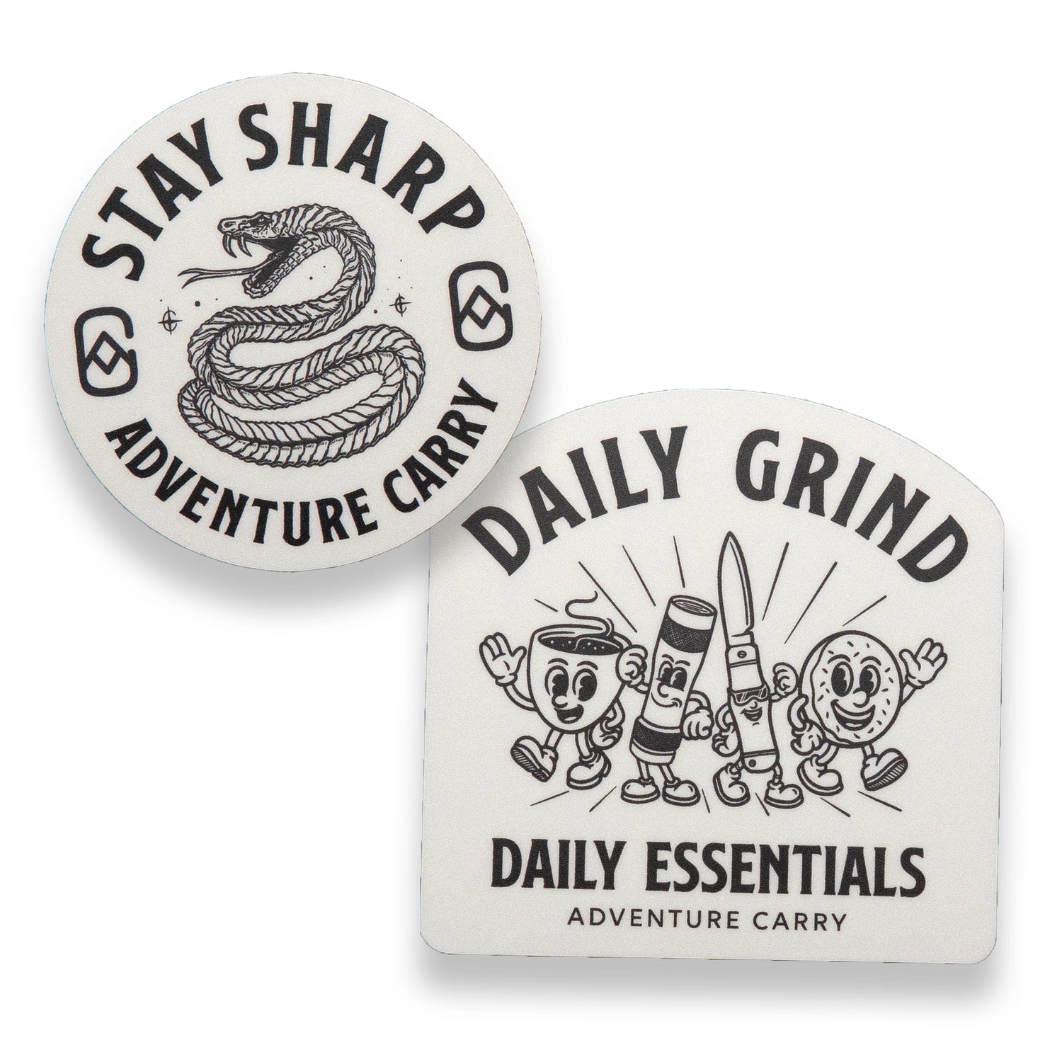 - Includes 1 x Stay Sharp sticker (65mm), 1 x Retro Daily Grind sticker (75mm)