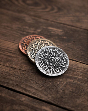 This EDC coin is made out of a high strength metal alloy combining zinc and aluminium. It has been given a beautiful antique aged finish with a galvanic coating protecting the coin from any corrosion and abrasion. It is available in a silver, brass or copper finish.