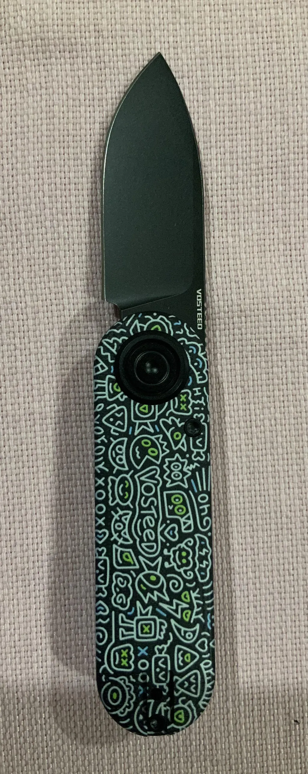 Vosteed's Corgi V gets a playful twist with fun doodles etched into the G10 scales. A standout piece for the creatively inclined and collectors who appreciate something a little fun & different in their rotation.